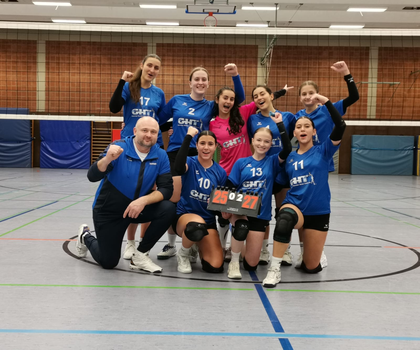 Die U16 Mädchen mussten zum letzten Spieltag der Saison in Ludwigsburg antreten. Mit 2 Siegen belegen sie Tabellenplatz 1 und erreichen so die Bezirksmeisterschaft. In der ganzen Spielrunde bewiesen die Mädchen ihre spielerische Überlegenheit, denn sie gewannen alle Spiele mit 2:0 Sätzen – lediglich gegen den Tabellenzweiten Ludwigsburg mussten sie einen Satz abgeben. Gegen Kornwestheim jedoch zeigten sie eine bravouröse Leistung: Im ersten Durchgang machte Jule Renz 25 Aufschläge und erzielte mit ihrem Team einen 25:0 Satzgewinn. Auch im zweiten Satz spielten sie konzentriert und gewannen 25:8.