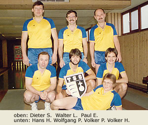 Bei den Punktspielen ging es dann gleicht richtig zur Sache. Das Debüt-Spiel stieg auf den Heimbahnen gegen den TV Cannstatt 2. Dass die Mannen am Ende der Saison im März 1988 die Meisterschaft der D-Klasse unter Dach und Fach bringen, hätte zu diesem Zeitpunkt noch keiner vermutet. Das Unternehmen Sportkegeln hatte begonnen.
