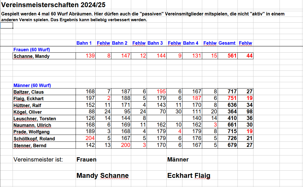 Vereinsmeisterschaft 2024/2025